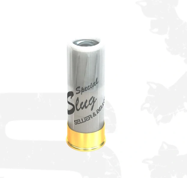 Náboje typu Slug jsou laborovány jednotnou střelou se stabilizátorem vlastní konstrukce firmy Sellier & Bellot.