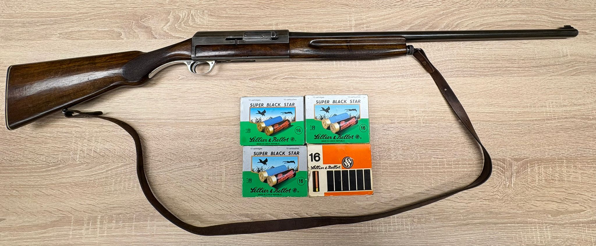 Zbraň je prodávána s 39ks střeliva 16/65 a popruhem.